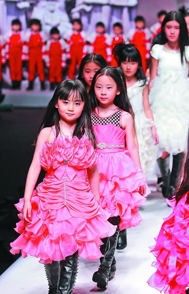 近日,中国设计师谢家齐2016/2017秋冬系列时装发布会在北京举行。发布会以“拯救小女王”为主题,以大型儿童影视剧《地球小卫士》为背景,呼吁人类爱护自然、保护环境。图为小模特们在表演。本报记者 郭俊锋摄