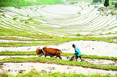 春天是播种希望的季节。云贵高原上,赶着水牛的农民在梯田里劳作,仿佛是一幅山水田园画;塔里木盆地中,播种机在棉田里画出一道道横平竖直的白色线条,又像是抽象的几何图案。