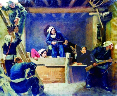 展线的一首一尾安放着罗工柳在意气风发的青年时期创作的作品《鲁迅像》,以及耄耋之年仍壮心不已挥洒的作品《郁郁葱葱》,随着时间的脉络展现出艺术家在不同的人生阶段、多样的艺术形式中所取得的成就。由中国国家博物馆、中国美术馆收藏的罗工柳代表作品《地道战》《毛泽东在延安作整风报告》《毛主席在井冈山》《马本斋的母亲》以及《李有才板话》等悉数亮相,同时罗工柳家属珍藏的其各个历史阶段的精彩作品,包含如《地道战》等大量作品的创作草图,以及留学苏联时期至晚年作品的构思稿、色彩稿,使展览呈现出浓厚的学术氛围。作为艺术上的多面手,罗工柳在人民币设计、文学作品插图和公共艺术创作等方面的作品也多有呈现。直至晚年,他仍笔耕不辍,用特制的“竹壳笔”以书法直抒胸臆,并对综合艺术等领域进行尝试,构成了他晚期艺术的交响。展览中近400件作品和大量文献资料首次全面呈现了罗工柳“一生为人民”的艺术历程,突出反映了其探索中国油画发展之路的创新精神。