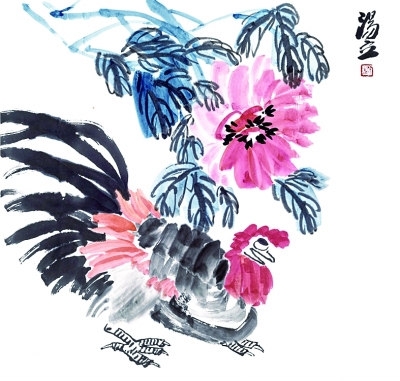 作为近现代国画大家汤文选之子,汤立对中国大写意花鸟画情有独钟,他的作品雄不失旷,巧不失拙,既保留了吴昌硕艺术风格中的雄浑苍茫,又吸收了齐白石清新自然的天趣一路,并且将西方现代艺术的构成理念暗含其中。线条的方圆曲直、用笔的轻重缓急以及用墨的枯湿浓淡都因汤立大处着眼的整体比照而强烈醒目,笔势运动的变化统一于随机生发的笔走龙蛇之中。李可染说:“可贵者胆”,汤立的胆量见于绘画便是大气豪放,且作画以书为法,以文为画,书画相依,纵横成趣。