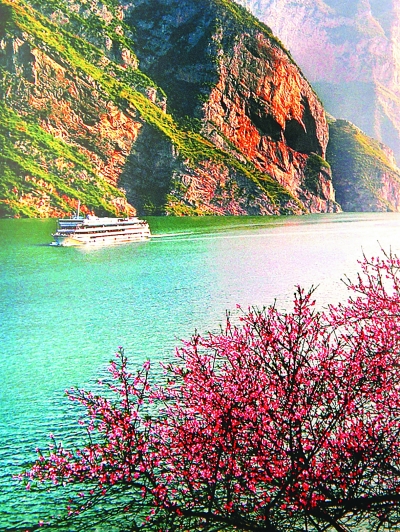 春天的巫峡,神女峰下山花烂漫。本报记者 郭俊锋摄
