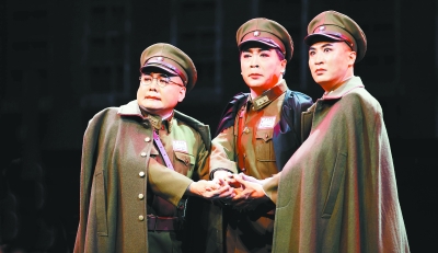 本剧的文本亦有可加工提高之处。首先,六场戏的分量和用力程度有些不均,比如四小丑出场和续范亭正面交锋一场戏的分量有些轻飘飘,剧作设计中缺乏矛盾冲突的真正对立方。其次,剧中的主要矛盾对立面设计也存在纰漏,比如,真正构成与续范亭冲突的对立方应该是蒋介石,但在剧作设计中他并没有出场,从而整体上拉低了本剧应有的冲突力度。再如,剧作应该是一气呵成的艺术,纵览全剧,缺乏一种转换自如和过渡自然的流畅感觉。