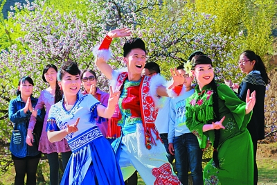 日前,山西省大同市阳高县守口堡明长城脚下,在如雨杏花的映衬中,二人台演员在展现非遗的魅力。山西阳高作为中国二人台艺术之乡,十分重视对优秀传统文化的保护与传承,国家级非物质文化遗产项目阳高二人台已经成为当地的文化品牌。本报记者 刘新武摄