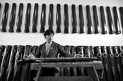 5月8日,河南省兰考县堌阳镇徐场村村民邢娜在给古琴试音。徐场村利用本地生产桐木的资源优势,大力发展乐器制造业,全村共有40多家乐器生产企业,年产古筝、古琴、琵琶等乐器20多个系列5万余件。近年来,得益于现代物流和电商销售渠道,大批村民走上了致富路。