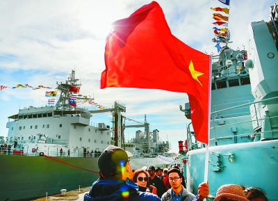 5月16日,当地华人华侨在南非西蒙斯敦参观导弹驱逐舰青岛舰。当日,由中国海军第二十二批护航编队导弹护卫舰大庆舰、导弹驱逐舰青岛舰和综合补给舰太湖舰组成的舰艇出访编队抵达南非开普敦附近的西蒙斯敦海军基地,开始对南非进行为期4天的友好访问。这是编队转入出访任务后访问的第一站。