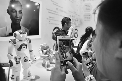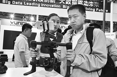 2016中国大数据产业峰会暨中国电子商务创新发展峰会于5月25日至29日在贵阳举行。由大数据产业驱动的人工智能、无人机、VR设备以及虚拟技术等前沿科技引来大批参观者驻足。李政葳摄/光明图片