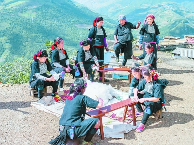 他们是哈尼族,属云南省元江县因远镇清水河流域的梭比人支系。2015年11月7日,距“哈尼十月年”不到20天,这段时间是哈尼人一年当中难得的休闲时间。63岁的杨好努把寨子里的族人、亲戚和要好的朋友共七八个妇女召集起来,采棉、纺织、靛染、做手工,唱歌跳舞“打牙祭”,成为冬日山寨的靓丽风景。