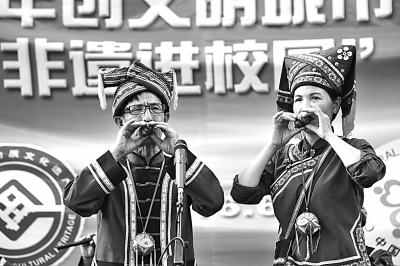 当日,广西靖西市“非遗”进校园活动在该市第五小学举行,通过组织民间艺人、“非遗”传承人走进校园,以文艺节目表演以及非物质文化遗产项目现场展示等形式,让广大学生近距离感受非物质文化遗产的魅力,共享非物质文化遗产保护成果。光明图片