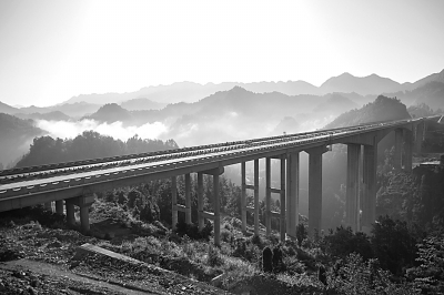 湖南省龙山至永顺高速公路项目是纵贯湘西土家族苗族自治州的南北向交通北上出省通道,对改善区域经济发展不平衡状况和加快西部地区发展有非常重要的战略意义。该项目目前进入收尾阶段,预计9月通车。图为6月6日拍摄的穿越山谷的湖南龙永高速红岩溪特大桥。曾祥辉摄/光明图片