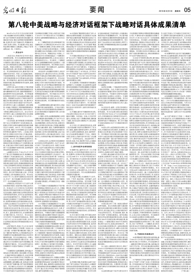 第八轮中美战略与经济对话框架下战略对话具体成果清单