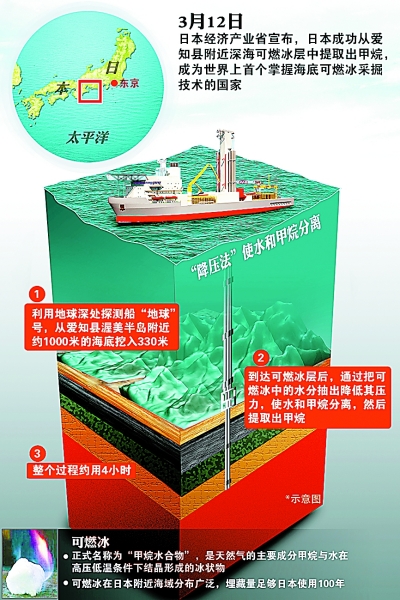 相较美国和俄罗斯,虽然起步较晚,但目前日本在可燃冰的探测与开发方面已处于世界领先的地位。