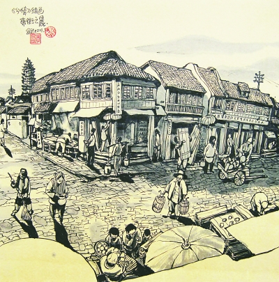 古朴的街道、川流的人群、婆娑树影、几抹斜云……在略微泛黄的纸张上,一道道犀利的线条描绘出老昆明的城区、郊野,定格每一个昆明人似写实又有些夸张的形象,让观者凭生亲切、温情之感。这组作品就是云南漫画家李昆武创作的《乡情》组画。
