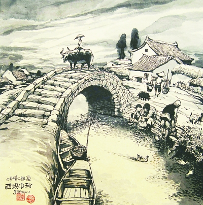 除了漫画创作,油画、中国画、水彩等绘画形式,李昆武更是无一不通。他的水墨组画《乡情》《滇池沧桑图》等作品多次在国内外展出。在《乡情》组画中,他用水墨画的形式将记忆中20世纪五六十年代的老昆明画下来,又在其中加入了新的元素。李昆武将中国的各种风貌都浓缩在其中,有四川的瓦片,有江南特征的隔火墙,有汽车,同时也有老式的人力车、推车。“这些画面体现了中国文化在云南的一个片段,唤起了老一辈昆明人的记忆,也让年轻的昆明人了解历史。”在一幅幅精美、细腻的水墨画中,观者仿佛穿越时空隧道,走回到半个多世纪前的某一天,那些清新的环境、朴质的民风,温厚善良、恭敬勤俭的“老昆明人品格”,无时无刻不让观者感受到创作者深深的乡愁与乡情。从资料的角度看,《乡情》组画不失为一份历史图解;从艺术创作的角度来讲,这组水墨画更突显了艺术家动人的情感与力量。一草一木,一砖一瓦,每一幅作品无不凝结着时代的沧桑。
