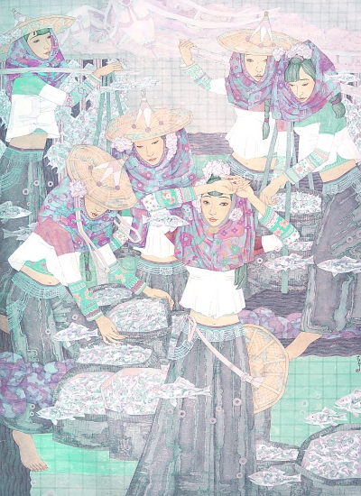福建省临山靠海,吸纳了各类文化精髓,洋为中用,巨大的包容性让艺术家得以充分展示自己的个性。有翁志承作品《小城故事》中现代都市的青春活力,也有林任菁作品《水镜园系列》带来的清雅素净,更不缺少梁明作品《岩壑泉声》的山水情怀。但百家争鸣的同时并不影响福建艺术家们对传统的重视,古为今用并渴望在世界发声的艺术家们在创作内容上根植传统,把讴歌福建新面貌的热情寓于山水、人物创作中。创作形式虽水墨色彩并重,或工细精致,或笔墨浑厚,但都脱不开一个“诚”字,是对艺术创作的诚恳,也是对自我内心的赤诚。