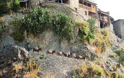 俄亚大村东面由北向南是奔腾不息的冲天河;西面是高山险峻的峡谷山脉;南面是波涛骇浪的金沙江;北面是高耸入云海拔4000多米的宁朗大山。特殊的自然环境,造成了交通的闭塞。因而村民上山要骑骡马,长途运输靠骡马,送肥拉粮离不开骡马。骡马与俄亚村民祖祖辈辈的生产、生活息息相关。在这个大村,家家户户房子底层都是饲养骡马,以及猪羊的牲畜棚。这里每家都养有四五匹马或骡子,骡马的多少,是村民财富的象征。当然,也是他们生产、生活的必需工具。其中饲养骡子的人家更多。而骡,是马和驴杂交的物种,它比驴高大、有力;比马更能吃苦耐劳,且不甚择食,更受村民喜爱。