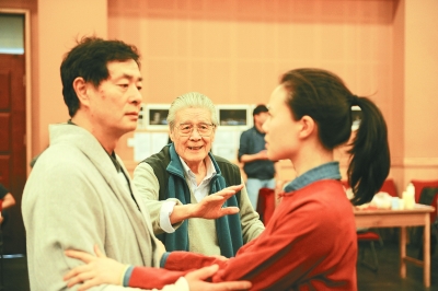 图为蓝天野(中)在指导中青年演员排戏。李春光摄/光明图片
