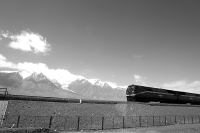 今年7月1日是青藏铁路全线建成通车十周年。数据显示,截至今年5月底,青藏铁路累计运送旅客1.15亿人次,运送货物4.48亿吨。西藏75%的货运量由青藏铁路承担,铁路运输能力是目前全西藏汽车货运能力的40多倍。图为玉珠峰山麓青藏铁路格(尔木)拉(萨)段。本报记者 钟超摄/光明图片