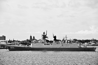 本报记者在现场看到,根据主办方安排,我导弹驱逐舰西安舰和导弹护卫舰衡水舰按顺序由内向外停靠珍珠港K7码头,和平方舟医院船、综合补给舰高邮湖舰、援潜救生船长岛船由内向外停靠K8码头。按照海军舰艇国际礼仪,我参演舰艇抵达夏威夷军港前,在桅杆两侧分别悬挂中美两国国旗。