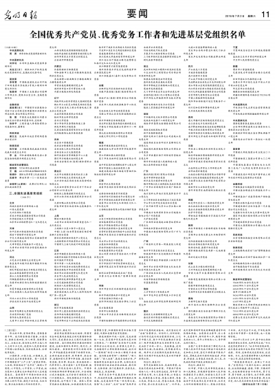 全国优秀共产党员、优秀党务工作者和先进基层党组织名单