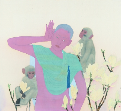 王天德的作品《后山图·回》远观意象缥缈,近看原是有上下两层,且大胆运用烫画技法;涂少辉的综合材料作品《析木之津》与环境融为一体,错落的空间关系让人仿佛触及平行宇宙间的联系;祝铮鸣的作品《灵隐》用色大胆,线条细腻,画中人物侧耳倾听的动作引人深思……这些当代水墨艺术家或借古开今,或纳洋兴中,不拘泥于陈旧的条条框框,大胆探索尝试。他们在观念、题材、媒介等方面推陈出新,拓展了水墨语言的表现维度。