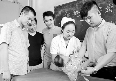 7月11日,江西省南丰县人民医院开展以“准爸爸学育婴”为主题的世界人口日活动。“准爸爸”们在医护人员的指导下,通过学习给婴儿洗澡、穿衣,帮助他们掌握有关育婴方面的护理知识和技能,做好准备迎接宝宝的到来。