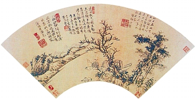 流派纷呈、名家辈出的明清时期,以各自不同的笔墨语言和艺术精神加以传达,并将文人画的诗、书、画、印相结合,大大丰富了扇画艺术的表现力,他们的艺术成就受益于对前人艺术精华的汲取、启迪、借鉴、融合、变革,并生发出崭新的艺术生命。当我们面对传统经典作品高山仰止的同时,并在学习、研究、探索中逐步成长和前行,使传统中国画艺术不断地丰富、发展和完善。