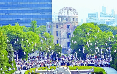 8月6日,鸽子在日本广岛和平纪念公园上空飞翔。当日,日本广岛举行仪式纪念原子弹爆炸71周年。为促使发动侵略战争的日本尽快投降,美军于1945年8月6日和9日分别向日本广岛和长崎投下原子弹。