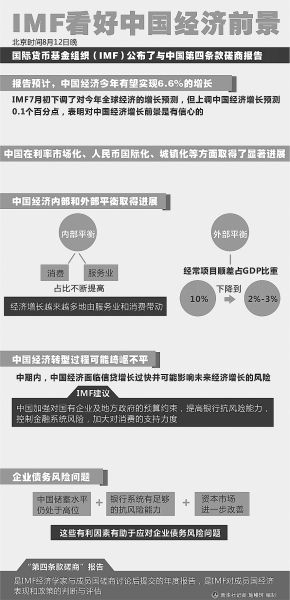 北京时间8月12日晚,国际货币基金组织(IMF)公布了与中国第四条款磋商报告,对中国经济金融形势进行了分析评估。报告指出,中国正在继续转向可持续的增长,在很多领域取得进展,但也面临不少挑战。国内业界如何评价这份报告?中国经济在实现可持续增长的道路上面临怎样的机遇和挑战?