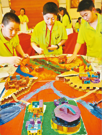 8月14日,小选手在建筑模型项目中进行 “民族团结”少数民族民居团体设计比赛。近日,2016年安徽省青少年科技模型锦标赛在安徽芜湖举行,来自全省43支中小学代表队的700余名中小学生参加了建筑模型、车辆模型等18个项目的角逐。