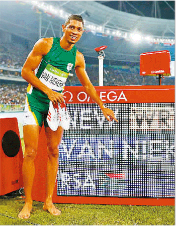 8月14日,南非选手范尼凯克在男子400米决赛中,以43秒03的成绩打破世界纪录并夺得冠军。新华社发