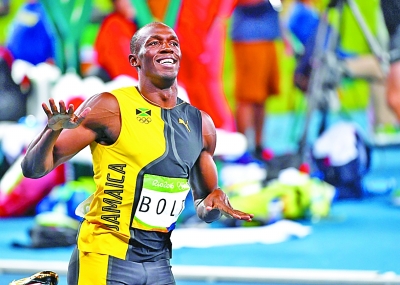 8月14日,牙买加选手博尔特在男子100米决赛中,以9秒81的成绩夺得冠军。新华社发