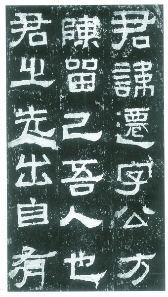 《张迁碑》的方整体势也充满了艺术性与自然率性之美,它的“方”往往具有“朴”的特色。南宋学者姜夔在《续书谱》中曾说:“魏晋书法之高,良由各尽字之真态,不以私意参之”。这句话原本是用来形容魏晋楷书的体势生动自然,毫无刻意做作的痕迹。此语借以形容《张迁碑》的体势之美也很合适。详察该碑可以发现,碑中每个字在整体方正的基调下,确实做到了极尽“字之真态”。其或端方,如“陈”与“汉”;或呈扁态,如“且”与“然”;或为长形,如“旧”与 “鲁”。有的字形偏大,如“筹”;有的则小,如“才”。有的端严方正,如“诗”;有的则斜侧弄险,如“外”。形态各异,八面足势,这些美感充分体现了《张迁碑》在取势过程中随形布势的特点。