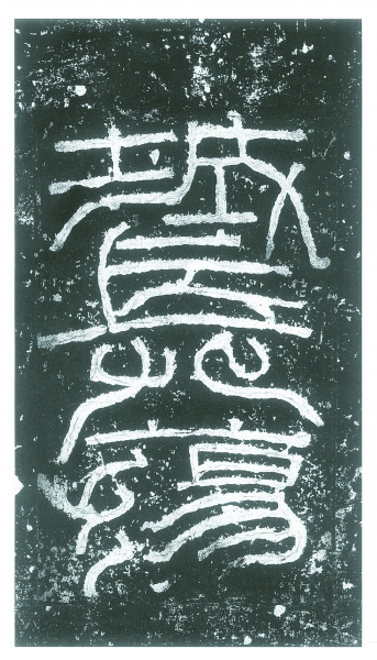 《张迁碑》全称《汉故谷城长荡阴令张君表颂》,东汉灵帝中平三年(186年)二月刊立。在清代,此碑南向立于山东东平州学明伦堂前,现藏于山东泰安岱庙东庑。此碑高314厘米,宽106厘米,圆首方趺,中无碑穿。碑阳文字共15行(第13行后空1行,再接第14行),每行42字。另外,在第14行正文“刊石立表”之“表”字旁,还刊有一个字形状像“衣”的字。碑阴共有3列,上中列均为19行,下列仅有3行。据叶昌炽《语石》记述,《张迁碑》的碑首“四面蟠螭,圭首锐处两鹊相对,此亦汉画之至精也”。碑首阳面偏左刊刻有题额两行,即“汉故谷城长荡阴令张君表颂”12字。方朔在《枕经堂金石书画题跋》中对此评论道:“碑额十二字,意在篆隶之间而屈曲填满,有似印书中缪篆。”其书刻风格独特,饶有古趣。字势扁方峻整,笔形屈曲,以方驭圆,不同部件在相互避让与穿插中,表现出一种浑然天成、自然质朴的意趣。此外,这12字排列还采用了纵书直写的形式,这又为后人考证古代“署书”的书写格式保留了实物资料。由于《张迁碑》的题额具有很高的艺术价值,清以后的不少书法篆刻名家纷纷汲取其中的元素,以此丰富自己的书法与篆刻创作。