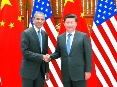 习近平指出,44年前,中美两国领导人就是在西湖国宾馆达成《上海公报》,开启了两国关系正常化的历史进程。2013年我们在安纳伯格庄园会晤以来,在双方共同努力下,中美新型大国关系建设取得许多实实在在的成果。中美双边贸易额、双向投资、人员往来都创下历史新高。双方在应对气候变化、推进双边投资协定谈判、建立两军互信机制、打击网络犯罪、应对非洲埃博拉疫情、推动伊朗核问题达成全面协议等方面取得重要进展。这些成果充分展示了中美关系的战略意义和全球影响,充分说明中美共同利益远大于分歧,中美合作可以办成许多有利于两国和世界的大事。
