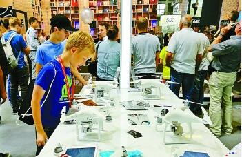在本届展会上,大疆科技公司推出型号为大疆精灵4的新品,获得本届IFA最佳智能飞行创新无人机奖项。独具特色的无人机飞行表演可谓赚足眼球。大疆无人机全球传媒总监亚当·纳吉伯格对记者说,今年IFA来大疆展位参观的人明显增多。大疆公司用心准备本届IFA,因为IFA是展示大疆企业文化和无人机尖端产品的绝佳平台,大疆必须拿出最有说服力的产品,获取消费者的信任。大疆无人机首次加入“障碍感知”“智能跟随”“指点飞行”三项创新功能,成为最大亮点,让无人机真正实现了与人工智能的结合。