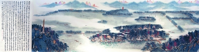 中国画尤其是近现代中国画中,画西湖全景题材的并不多。当确定要画西湖全景图后,艺术家们开始思索:三面环山一面城的西湖,每一面都让人陶醉,究竟哪个位置取景才能凸显西湖的韵味、包含西湖的全貌?