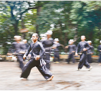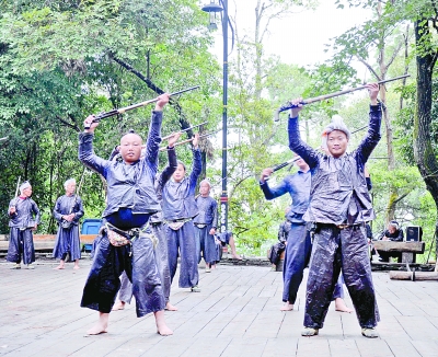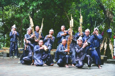 9月10日,贵州省从江县丙妹镇岜沙村苗族群众举行苗族芦笙舞、岜沙婚俗、镰刀剃头、迎客舞、鸣枪等活动,展演苗族原生态文化魅力,迎接即将到来的中秋佳节。