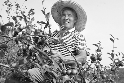安徽省庐江县某公司于2010年通过土地流转,租赁了庐江县冶父山镇山里村民组400亩乱石荒山,在镇村两级和林业技术部门的大力支持下,引进种植优良的“长林二号”油茶,经科学的管理,今年已硕果满枝,达到丰产。图为9月26日,公司员工面对即将收获的果实喜上眉梢。