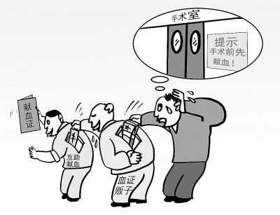 根据我国《献血法》,持无偿献血证的患者或家属手术可以优先用血、安排手术,这让一张“无偿献血证”弥足珍贵,也让别有用心之人看准这一机会。据媒体报道,近日有“血贩子”在北京朝阳公园的采血车附近做起“证贩子”的买卖。他们利用献血核查程序的漏洞,雇人献血给需求者换得证件,最高可卖到1万元。