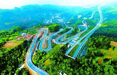 交通扶贫是脱贫攻坚的重要内容之一。“十二五”以来,毕节市投入大量资金,实施普通国省干线公路改造项目11个,覆盖8个县区,为经济社会发展、民生保障和改善提供了坚强的交通保障。图为地处乌蒙山区的326国道毕节市赫章县野马川段,与毕威高速公路一起,掩映在青山绿树中。