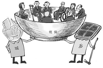 最低生活保障是维护社会稳定体系的重要组成部分。赵国品绘/光明图片