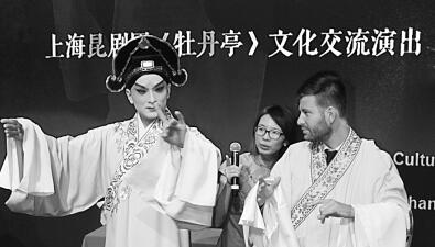 “十一”期间,比利时布鲁塞尔中国文化中心特邀上海昆剧团举办了三场昆曲讲座。这是“跨越时空的对话——纪念文学巨匠汤显祖和莎士比亚逝世400周年”大型系列活动的组成部分。图为讲座上上海昆剧团演员与西方观众互动。