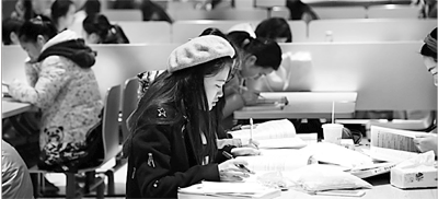 | 期末考试将至,各大高校图书馆自习室又被熙熙攘攘的复习大军挤满,到处都洋溢着期末考试的气息。苏志刚摄/光明图片 |
