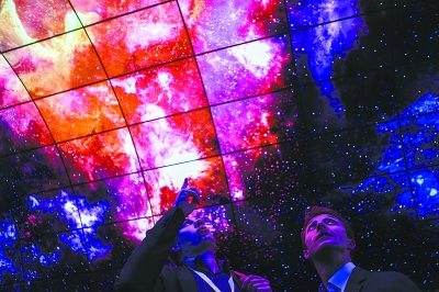除了日趋智能的现实生活,虚拟现实技术(VR)是本届今年IFA的又一热点。在三星、中兴等企业的电视、游戏展区,许多游客争相佩戴展位上的VR设备,体验过山车、蹦极、横跨悬崖等不同虚拟场景的快感。在中兴展区,记者佩戴上最新款VR设备,走过狂风呼啸的吊桥,感觉深渊仿佛就在脚下,双腿不由自主地颤栗,逼真到让人忘记只是站在平地体验台上。