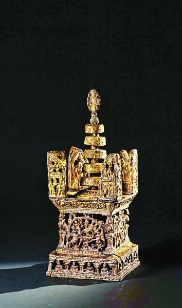 陈杰告诉记者,这是上海第一次经考古发掘确认的古塔遗址。从塔基的直径而言,隆平寺塔的体量超过目前上海所存的13座古塔。其结构特殊,不同于目前国内已经发掘的塔基形式。塔基发现了保存完整的地宫,这令考古人员兴奋不已。地宫中置套函,函外左右各有一座阿育王塔。套函共有四层,最外为木函,向内依次为铁函、木贴金函、银函。银函底部铺有一层彩色宝石,上置一尊释迦牟尼涅槃像。此外,在木函内还装藏有银箸、银勺、银钗、银龟、铜镜、水晶佛珠等一批供奉品。本次发掘在套函内发现了一个铜瓶,瓶内装有4颗圆珠,其中3颗为水晶质,它们应当就是佛教圣物舍利,这一发现也与文献中关于隆平寺塔“中藏舍利”的记载相符。