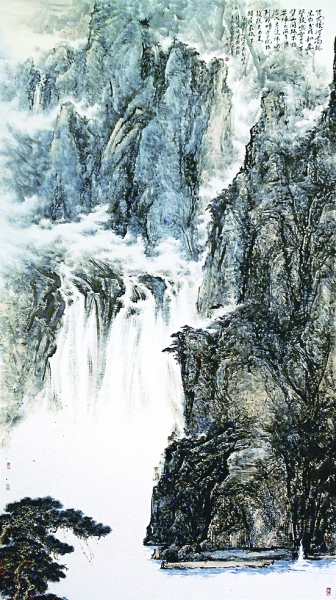 这是我所见过的,曾经深深打动我的美景,现在我再现在这幅画里,是想让大家和我一样爱上这种气魄和勇于开拓的精神。我想把我所感受的种种触动放进这幅《三峡飞瀑图》里,尽量把我心中的三峡画得更真实、更富有魅力!