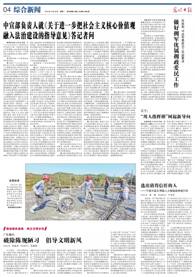 中宣部负责人就《关于进一步把社会主义核心价值观融入法治建设的指导意见》答记者问