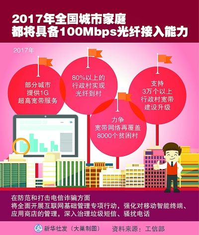 2017年全国城市家庭都将具备100Mbps光纤接入能力