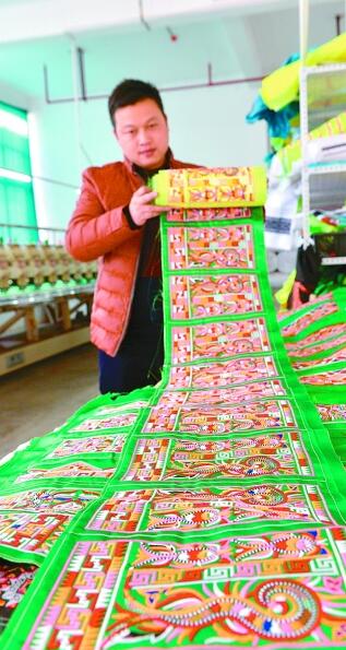 近年来,贵州省榕江县加大对民族刺绣产业的扶持力度,在当地少数民族刺绣图案的基础上,融入时尚元素,同时引进电脑绣花设备,提高工效,使刺绣老工艺焕发新生机。目前,该县有绣花厂(作坊)20余家,年产值超3000万元。图为12月27日,当地刺绣厂的工人们在工作。