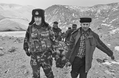2月4日14时30分左右,来自北京的游客李女士与周女士攀登至4600米的慕士塔格峰山腰处时,李女士不慎从冰雪覆盖的山坡滑落,被一块大石块挡住,右腿部受伤无法行走,周女士被困在陡峭的冰山高处。两人向新疆喀什科克牙尔边防派出所求救,科克牙尔边防派出所所长多力坤立即带领8名官兵和护边员,携带救援器材并联系县医院急救车一同赶赴事发现场。18时50分,将李女士救下送往县城医院进行救治,并解救出被困的周女士,送回安全地带。慕士塔格峰位于新疆阿克陶县与塔什库尔干塔吉克自治县交界处,海拔7509米,每年都吸引了众多游客来登山。